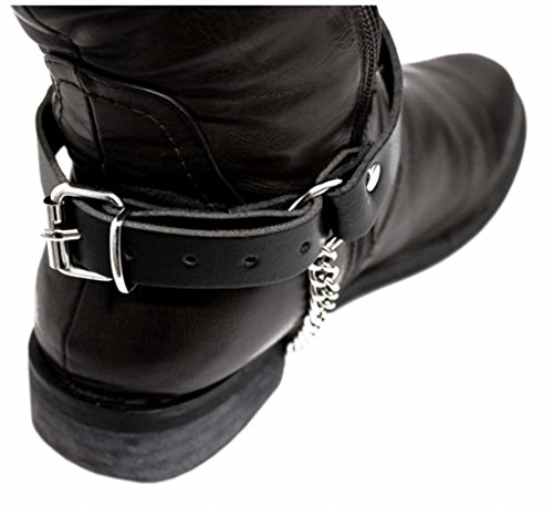 Product Description Leather Boot Straps ~ Boot chains biker western boot straps ~ Black boot straps. This is a musthave for everyone who is into boots. Regardless of whether you are a punk, a biker or a cowboy these boot straps made of 100% genuine leather will turn your boots in a new look. But hold who said that boot straps only look good on boots? Due to the adjustable buckle you can wear these straps on your neck too. ~ Material: 100% genuine leather ~ Color: Black ~ Length including buckle approximately: 47cm ~ Width: 2cm ~ Package contains one pair ~ Note:Real leather is a natural product. Variations in colour and irregularities of surface are not a fault. Moreover they are natural marks emphasizing the authenticity of the valuable material. 0