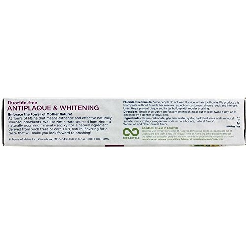 Tom's of Maine Natural Fluoride-Free Antiplaque & Whitening Toothpaste, Fennel 5.50 oz ( Pack of 4)