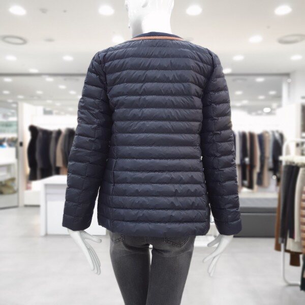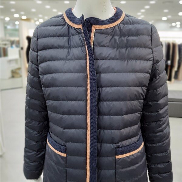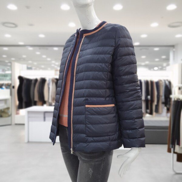 가벼운 구스 경량패딩으로여성스럽게 심플하게 다양하게 코디가 가능한 아이템입니다 겉라운딩 배색의 마무리가 깔끔합니다