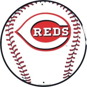CINCINNATI REDS 12 INCH BASEBALL STYLE METAL CIRCLE SIGN