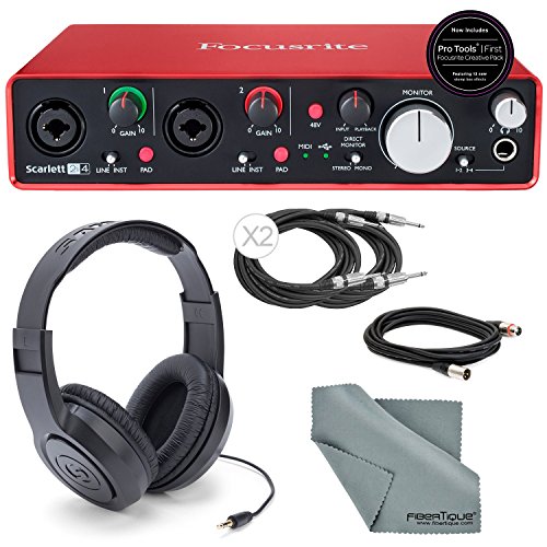 Bundle includes: Focusrite Scarlett 2i4 (2nd Gen) USB Audio Interface + Samson stereo headphones which offer great sound and feature a lightweight + FiberTique cleaning cloth that is designed with extremely fine microfiber and leaves zero scratches + XLR cable + 2 1/4 inch cables