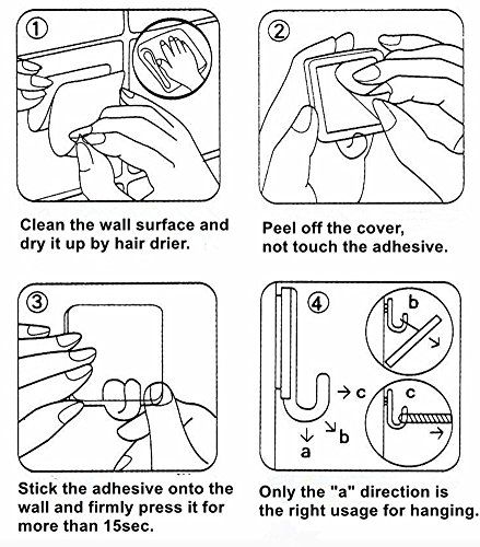 - NOTICE:Not applicable to mud concrete wall,wallpaper,cloth or uneven moist surface.Don't close to high temperature equipments(over 80℃) as gas stove,baking oven and don't hang fragile dangerous items,such as glass cup,pot,etc.