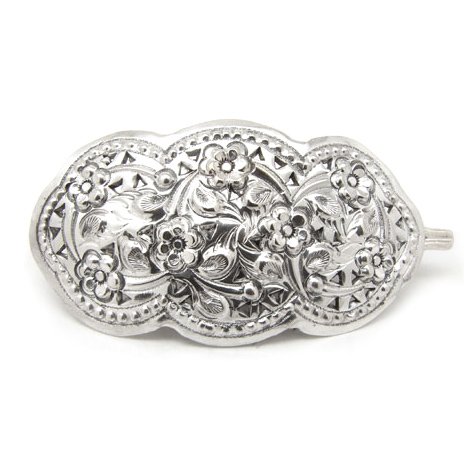 -. Title : Medium Ornate Victorian Style and Daisy Flower Sterling Silver Hair Clip Pin Barrette