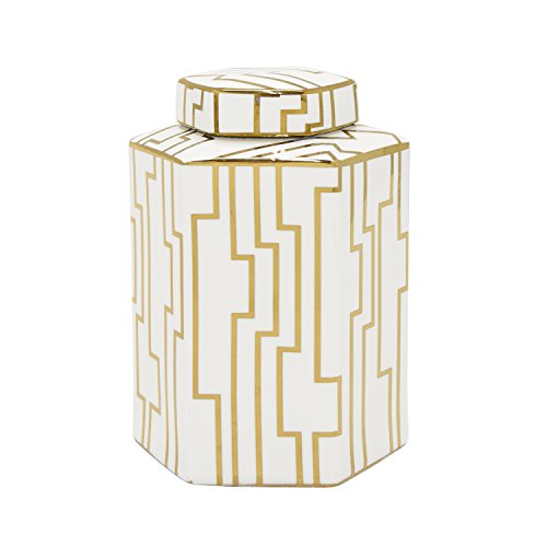 Three Hands Covered Jar, White/Gold
