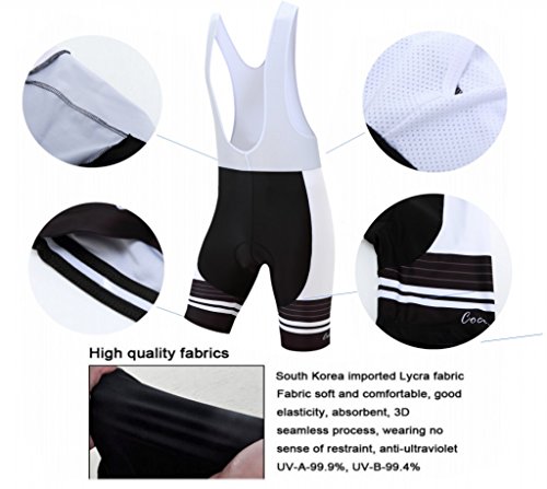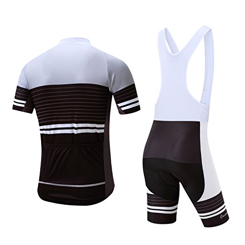 Coconut Pro Team Men's Cycling Jersey Bib Shorts With 3D Padded (Large, White/Black stripe)