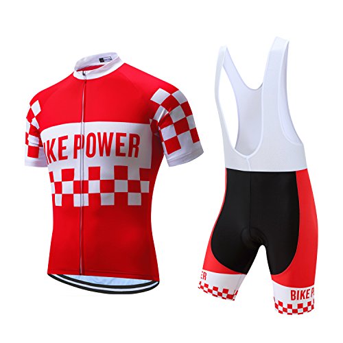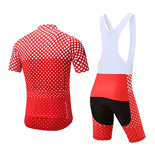 Coconut Pro Team Men's Cycling Jersey Bib Shorts With 3D Padded (XX-Large, Red/White dot)