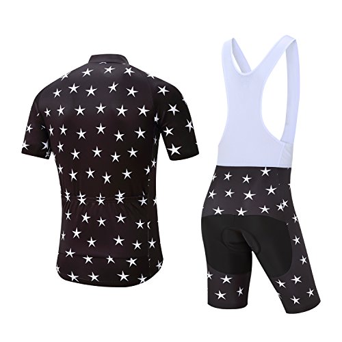 Coconut Pro Team Men's Cycling Jersey Bib Shorts With 3D Padded (XX-Large, Black/White Star)