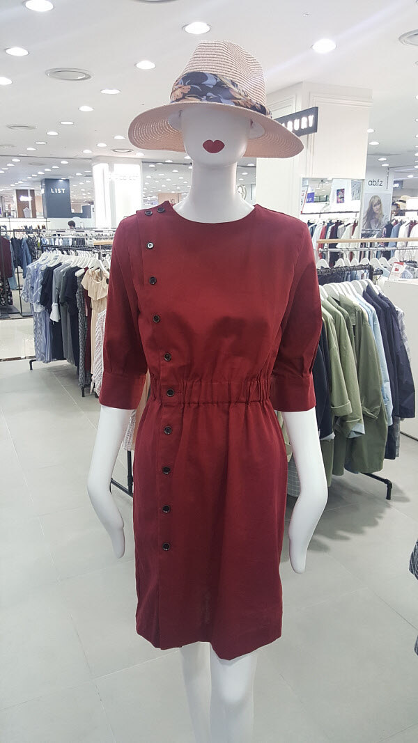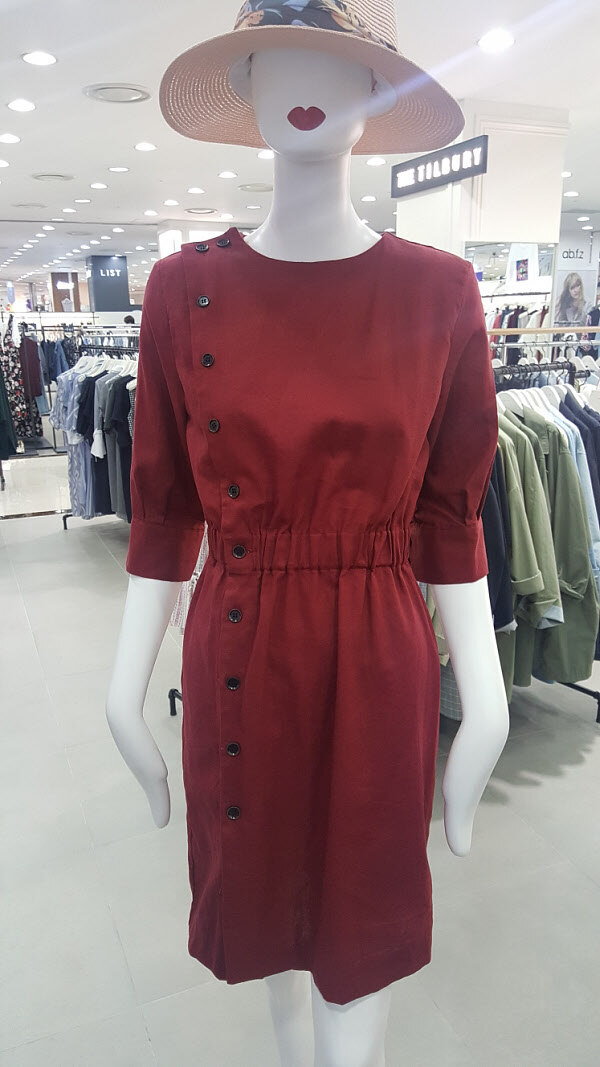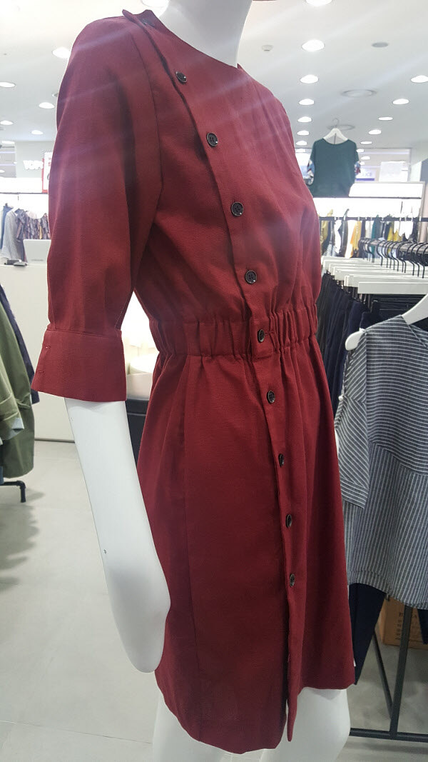 린넨소재의 짙은 와인색 ㆍ네이비 컬러가 고급스럽고 우아한 스타일에 원피스입니다전체 단추장식 오픈형이며 허리에 밴딩라인이 하이웨스트로 다리가 길어보이는 디자인입니다