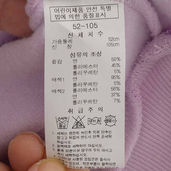 세탁방법 및 취급시 주의사항 : 뒤집어서 단독세탁하십시요
