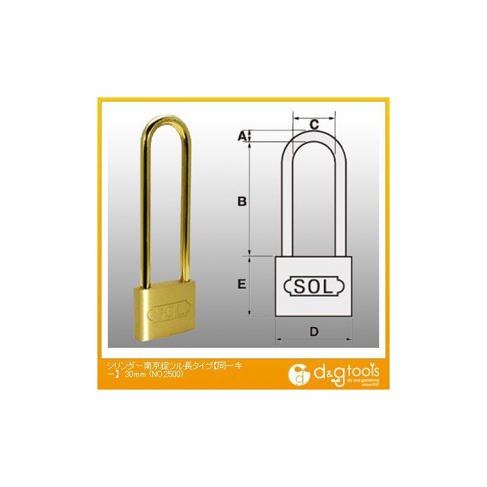원본상품명: ソ?ル シリンダ?錠(南京錠)ツル長タイプ 同一キ? 30mm (NO.2500)