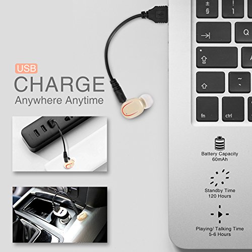 Sabuy small car earphone built in rechargeable Lithium-poly 60mAh battery, 80 minutes fully charge time get 120 hours standy time or 5-6 hours playing/talking time