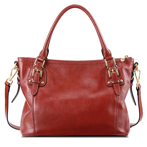 Kattee Women's Vintage Soft Leather Tote Shoulder Bag(Wine Red, Large)