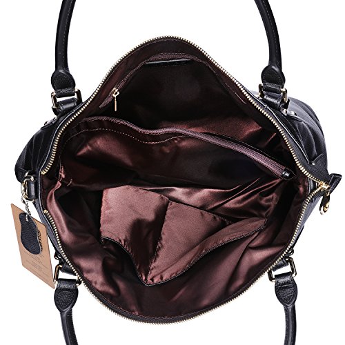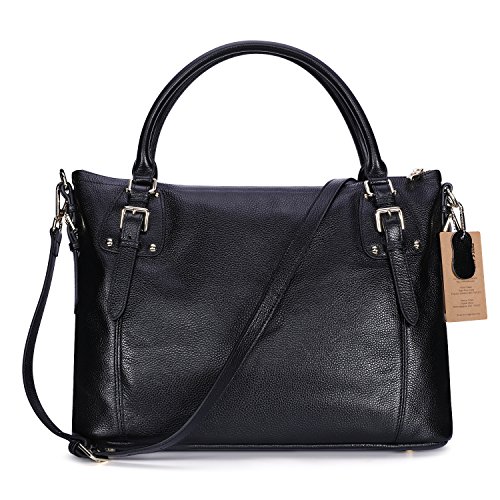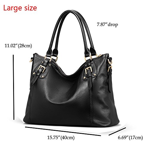 Kattee Women's Vintage Genuine Soft Leather Tote Shoulder Bag (Black, Large)