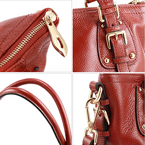 Kattee Women's Vintage Genuine Soft Leather Tote Shoulder Bag (Sorrel, Small)