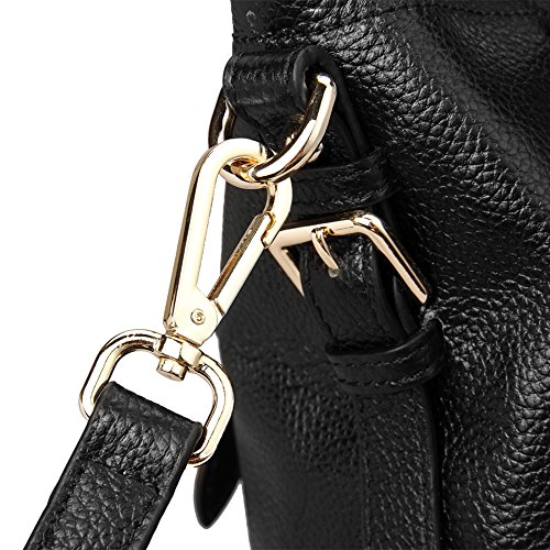 Kattee Women's Vintage Genuine Soft Leather Tote Shoulder Bag (Black, Small)