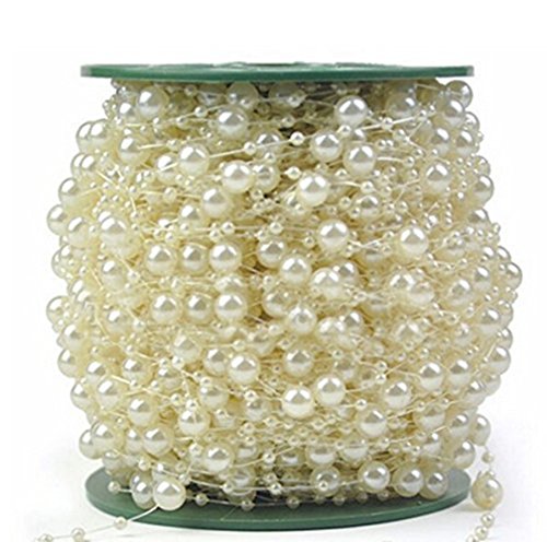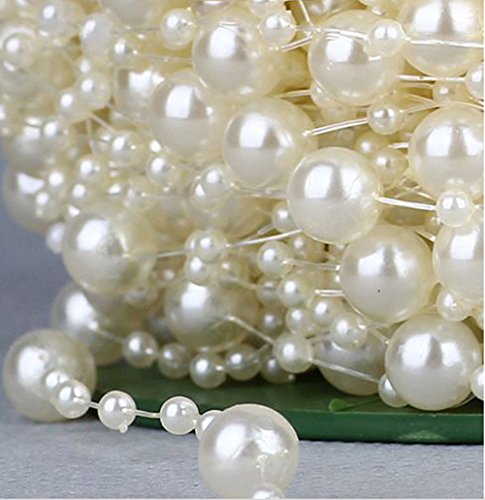Ltvystore 200Feet/60Meter Roll Ivory Pearl String Party Garland Wedding Centerpieces Bridal Bouquet Crafts Decoration (8+3D-60M)