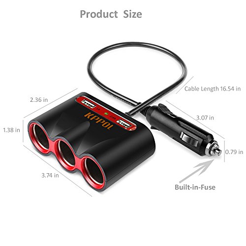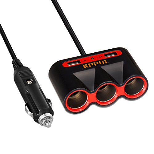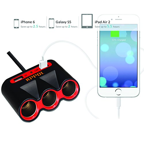 KPPOL 120W 12V/24V 3-Socket Cigarette Lighter Power Adapter DC Outlet Splitter with 3.4A Dual USB Charging Ports for iPhone 7/7 Plus/6s/6/6 Plus, iPad, Samsung Galaxy S6/S6 Edge and More