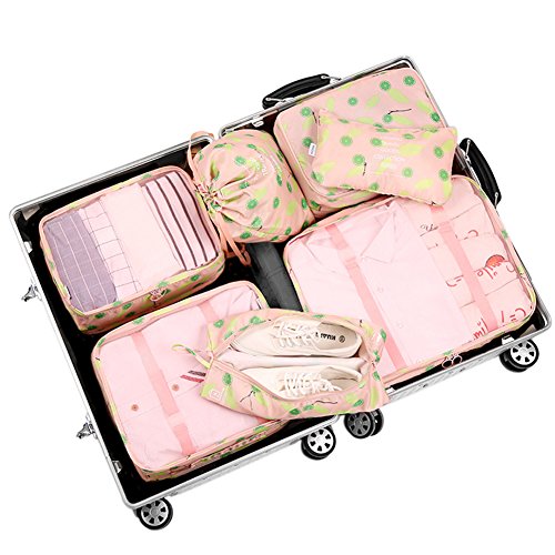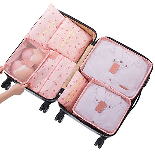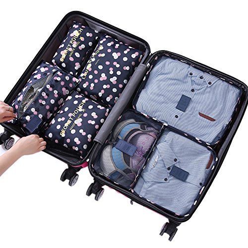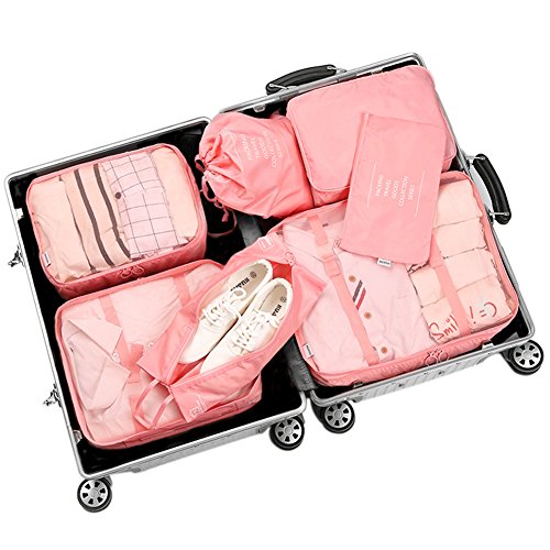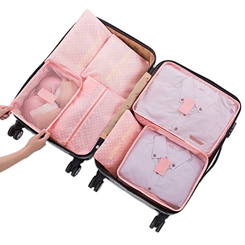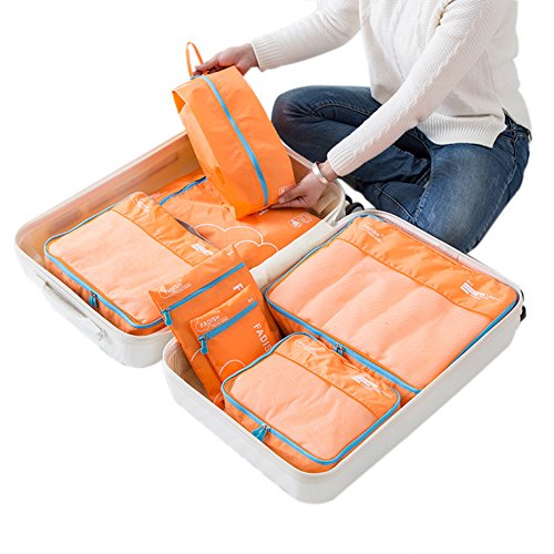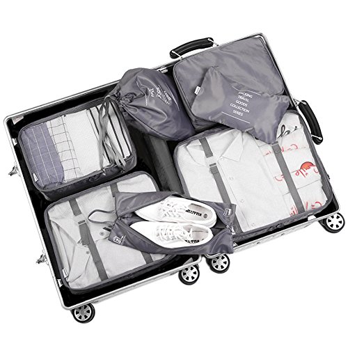 SAVE YOUR SPACE - 7 sizes bags to seperate your items ( travel clothing, shoes, makeup, shaving accessories,etc.),to make your luggage clean and tity