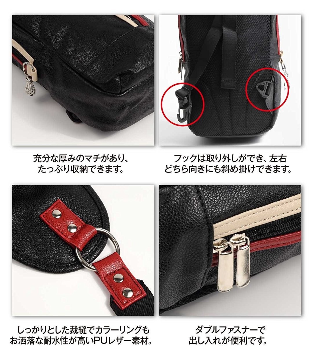 メイン素材: 合皮表地: レザー◆◆◆ROZZERMAN 2周年記念につき特別価格でご提供させて頂きます◆◆◆買わなきゃ絶対損です!サイズ:17 ×32 *×8CM 材質:PUレザー(合成革) 重さ:280g背面が通気性の高いメッシュ素材なので、長時間使用してもムレにくく快適!人気のメンズ ショルダーバックが発売!大容量で開口部が広いためペットボトルや手帳、A5ノート、タブレット(ipad)などが十分に入れやすいです!フロントポケットはファスナー付きで、スマホ収納に便利です。クッション性もあるので、中の荷物が背中にあたる不快感を軽減。 左掛け・右掛けどちらでも対応できるように左右に留め具が付く。 とても軽量なボディバッグ(ショルダーバック)、斜めがけやすく肩に余計な負担はなし。 自転車やバイクに乗るときにも便利!防水加工を施してあり雨の日も安心! 防水性と耐摩耗に優れた柔らかいPUレザーを採用。 デザイン性、耐久性だけではなく実用的な品を目指します。