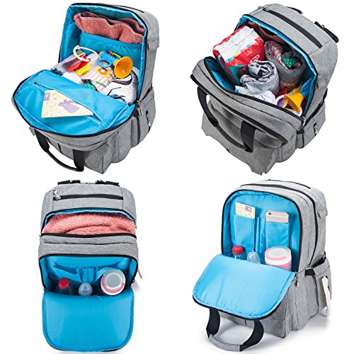 MULTI-FUNCTION BABY BACKPACK & FASHION DESIGN: Shape 17.5 x 14 x 8.5 inches. Elasticized interior storage pockets; side bottle pockets; thermal insulation bottle pockets; cell phone pocket; protected zipper pockets; laptop pocket, diaper changing pad and durable stroller straps to offer all day comfort. Very convenient and strong function.