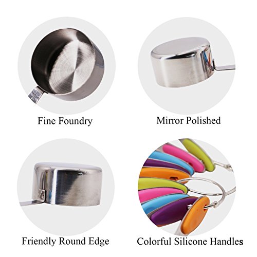 - Measuring cups and spoons are crafted from food grade 18/8 stainless steel, they could be used for any food, rust resistant, will not be polluted or eroded, make your cooking always safe and health, long service life accompanied by your family all the time.