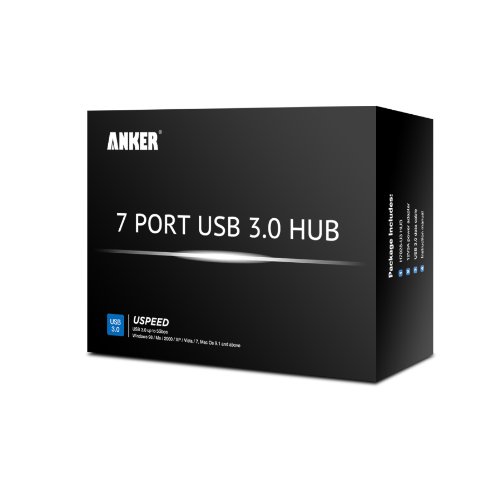 - Feature : SuperSpeed USB 3.0 ports support data transfer rates of up to 5Gbps. (The actual transfer rate will depend on the capability of your device). Backward compatible with USB 2.0 / 1.1. / Solid port construction and industrial-grade material endure years of use. 7 blue LED indicators indicate the power and USB connection status. / Built-in surge protection, a high-grade chipset and a 36W adapter guarantee stable operation. / Plug-and-play. Supports hot swapping. No install driver needed. / Package includes: Anker® USB 3.0 7-port Hub, 4 ft 12V 3A power adapter, 3.3 ft USB 3.0 cable, user manual. Free lifetime technical support and 18-month manufacturer's warranty.