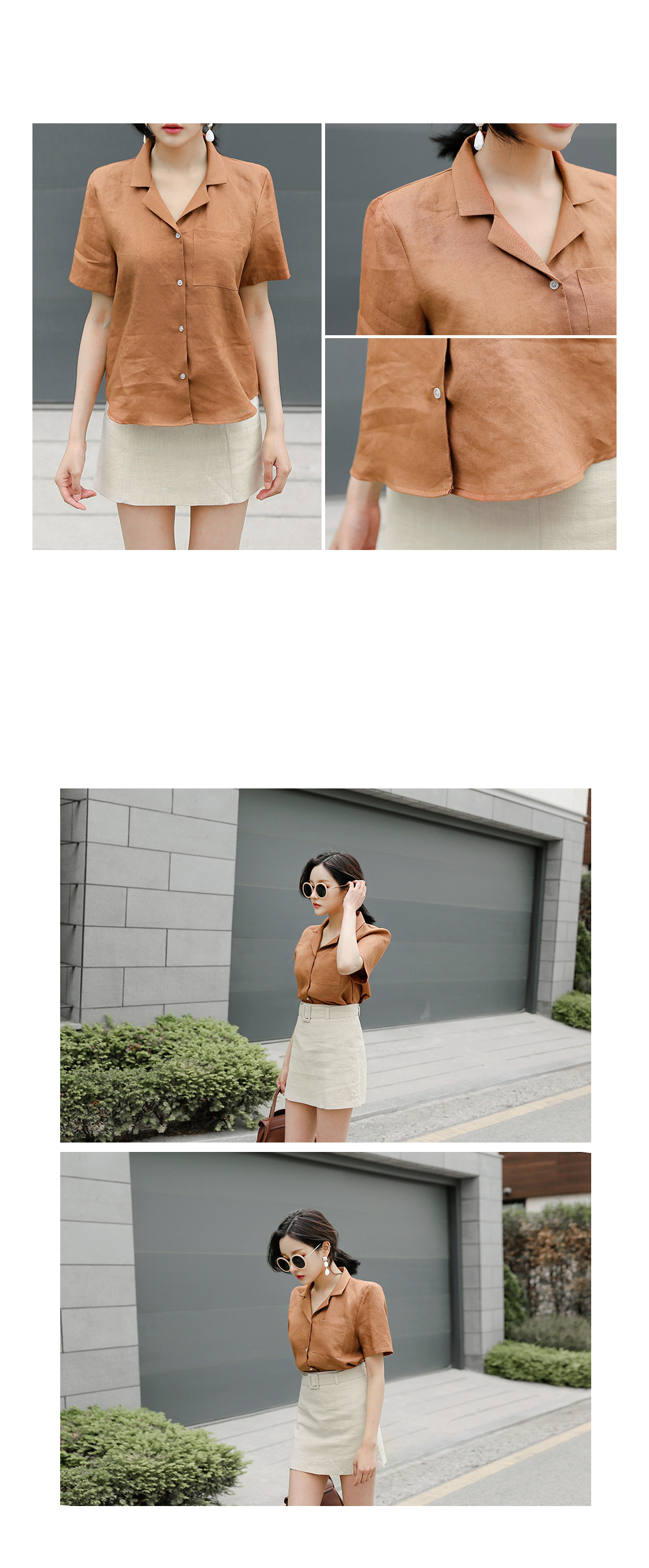 시원한 착용감과 깔끔한 디자인으로 멋스러움까지 느낄 수 있는 셔츠 아이템을 소개해드려요~^^ 린넨 소재로 여름휴가 코디매치를 하기에 알맞은 셔츠 아이템이랍니다~ 베이직하고 군더더기없이 깔끔한 디자인으로 팬츠,스커트 등 다양한 아이템들과 함께 스타일링 연출하기에 알맞답니다~ 적당한 핏감으로 누구든지 편안하고 시원한 스타일링 연출이 가능하답니다~