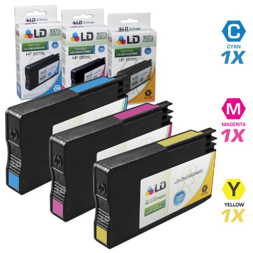 LD © Remanufactured Replacement for HP 951 Set of 3 Ink Cartridges Includes: 1 Cyan CN049AN, 1 Magenta CN051AN, and 1 Yellow CN052AN