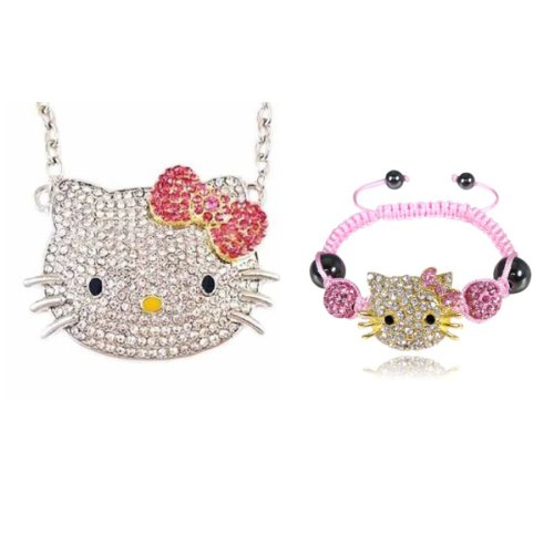 Large Hello Kitty Crystal Pendant Necklace Dimensions: Pendant roughly 1.5"L x 2"W, necklace length: 21" with 2.5" extendable chain. Material: Crystal, Zinc Alloy
