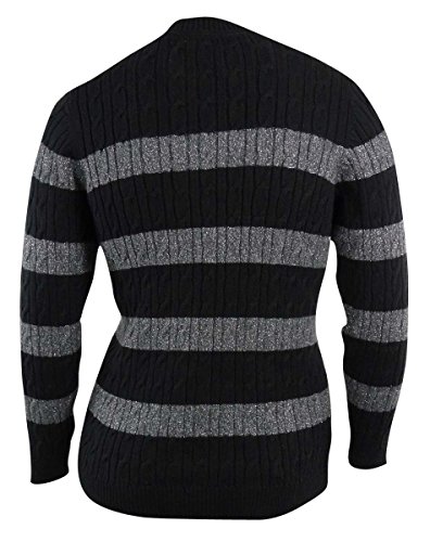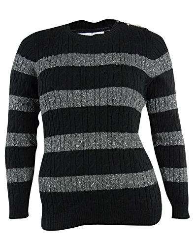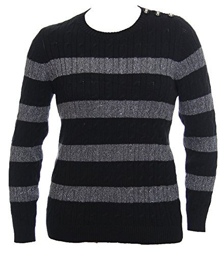 Long sleeve striped sweater with button detail on left shoulder.