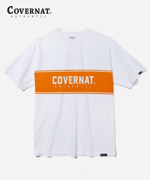 (COVERNAT) S/S JERSEY LOGO BLOCK TEE WHITE / ORANGE
