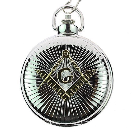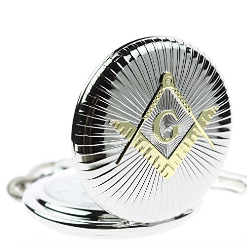 -. Feature : Silver Free Mason Symbol Engraved / Japanese Quartz Movement, Battery included / Antique Gloss Finish,Material: Alloy,Full Hunter / Chain Length 14.17 inch,Case diameter: 1.87 inch approx / Brand new with excellent workmanship,come with a chain