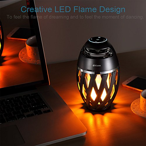 DIKAOU Led flame speaker, Torch atmosphere Bluetooth speakers&Outdoor Portable Stereo Speaker with HD Audio and Enhanced Bass,LED flickers warm yellow lights BT4.2 for iPhone/iPad /Android -Black