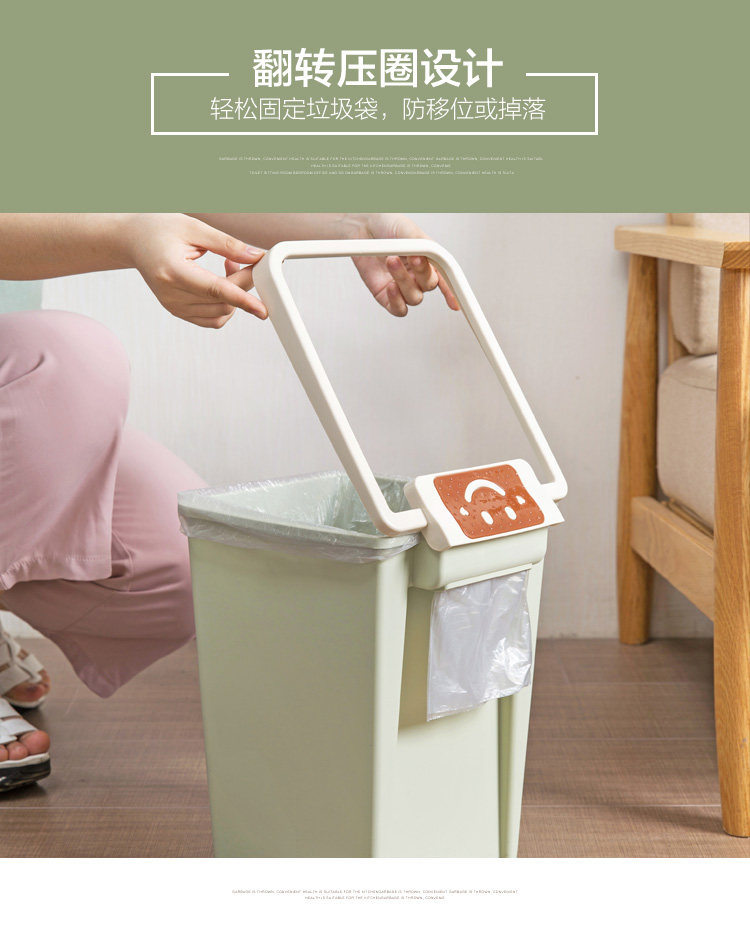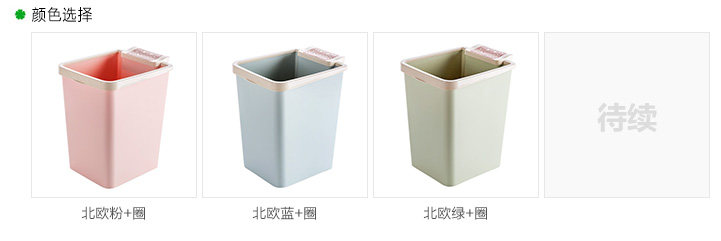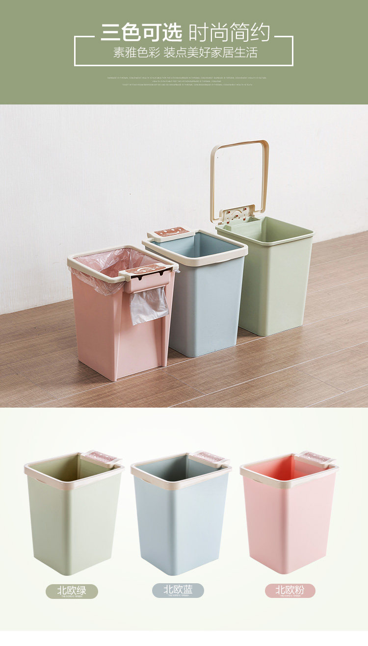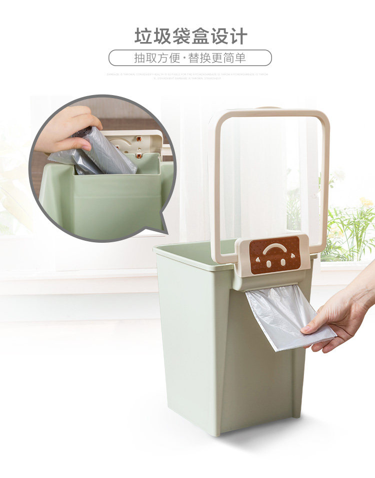 厚实PP材质制作,多色清新,简约时尚,压圈设计,可固定垃圾袋;垃圾袋盒设计,便于抽取使用。日常垃圾轻松收纳,让家更洁净。