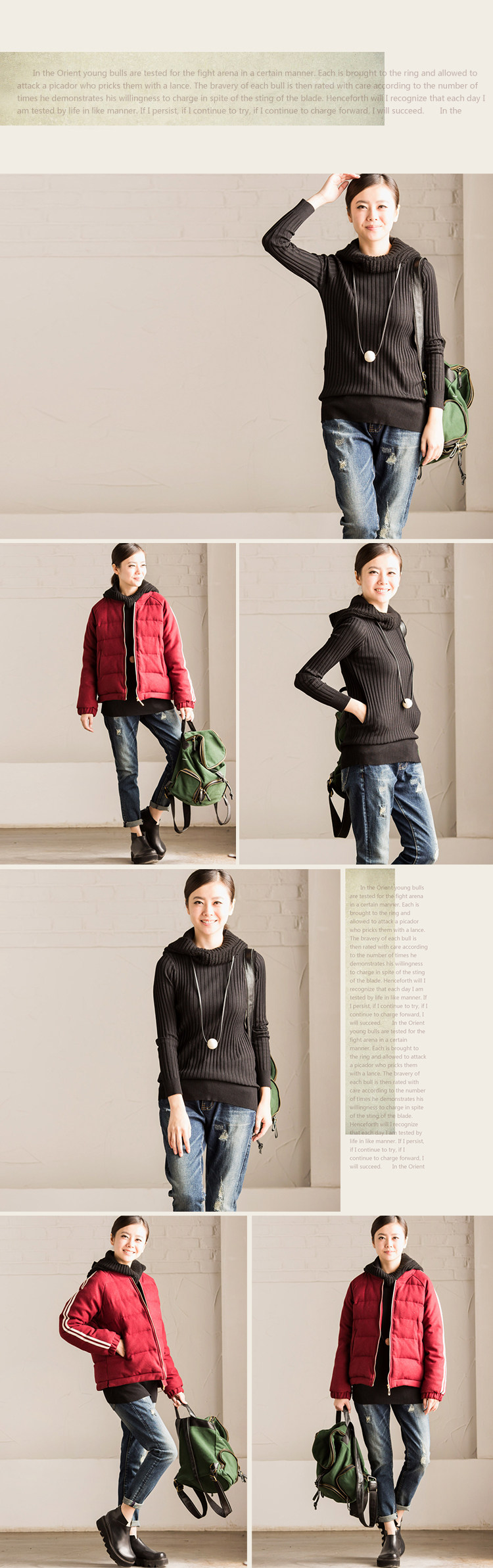 面料:棉,手感舒适,稍有弹力,单件重370g,厚度常规,适宜秋冬季穿~ |