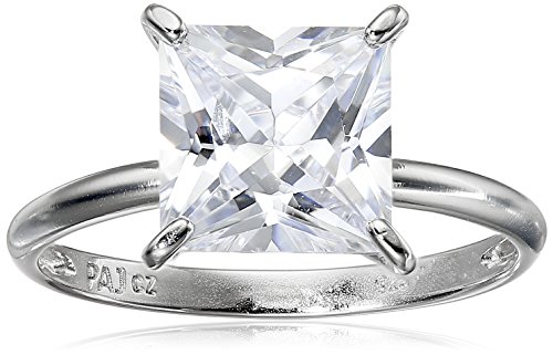 Platinum Plated Sterling Silver Princess-Cut Cubic Zirconia Solitaire Ring, Size 8