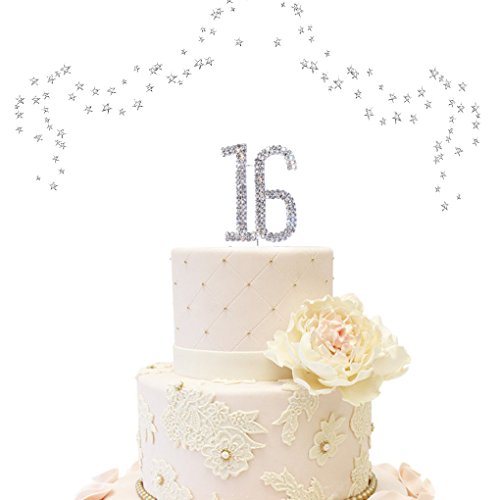 - Attention Grabbing Style - This sparkly crystal 16 rhinestone cake topper adds a fun look to your cake. It is so sparkly sophisticated and is sure to be noticed by your all guests
