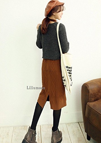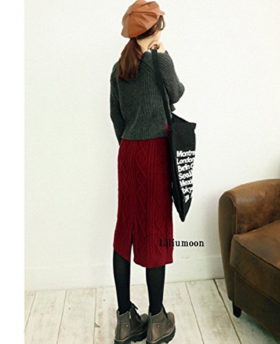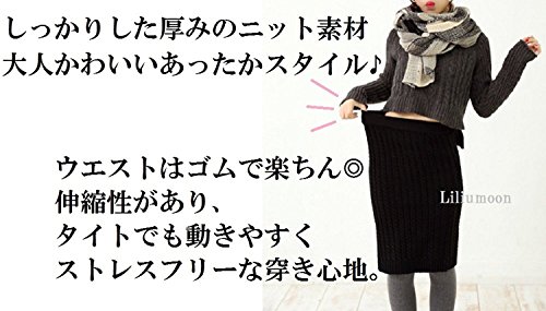 -. Title : Liliumoon ニット タイト ペンシル ひざ丈 スカート 秋 冬 / ウエスト ゴム / ストレッチ 素材 【柄 2タイプ/ ケーブル編み アラン編み 】 膝丈 スリット あったか ウール 秋冬 レディース ファッション
