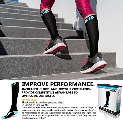 SB SOX Compression Socks (20-30mmHg) for Men & Women - BEST Socks for Running, Medical, Athletic, Varicose Veins, Travel, Pregnancy, Shin Splints, Nursing. (Black/Blue, Small)