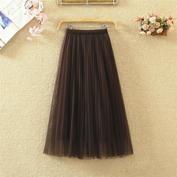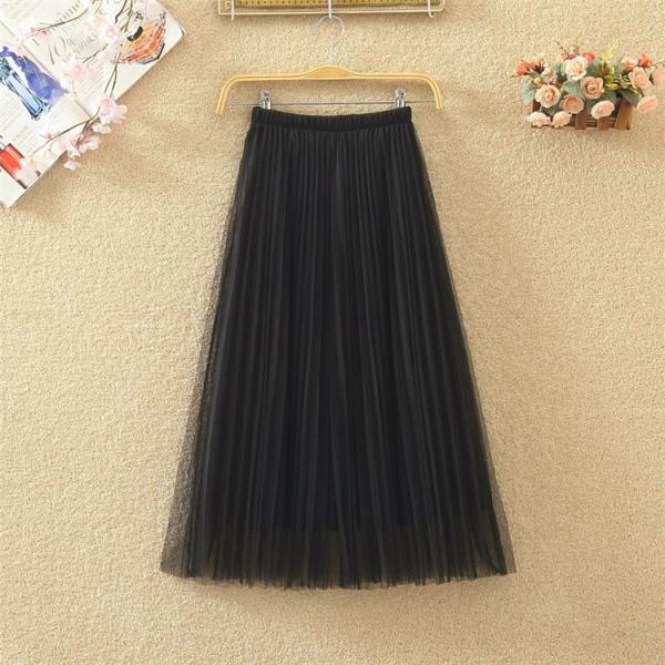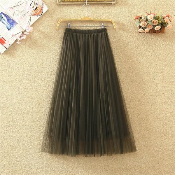 外側メッシュ素材の2層ロングスカート。