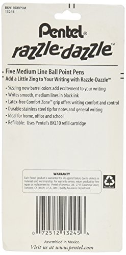 -. Title : Pentel R.S.V.P. Razzle-Dazzle Ballpoint Pen, Medium Line, Black Ink, 5 Pack (BK91RDBP5M)