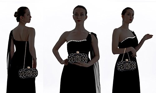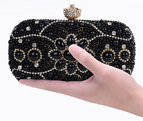 Feature*100% brand new and high quality.*This clutch follows fashion trend closely.*Available for 2 colors optional (Black, Ivory).*Removable shoulder drop is 21" and the hidden strap is 7" (Approx).*Best gift for your mom, sisters, daughters, girlfriend, wife, friends,bridesmaids.*The handbag clutch is compact and roomy storage for iphone7+/lipstick/small wallet/ cards/cash/keys, and other must have small items.*Satin lining protect your belongings.If you need help or have any question, feel free to contract us. we will do our best to help you.Feature