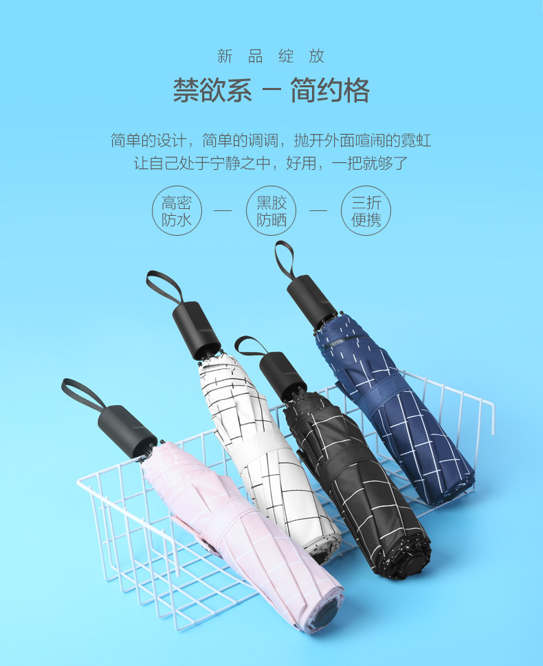 雨伞折叠简约格子三折女男晴雨两用小清新太阳伞遮阳防晒防紫外线