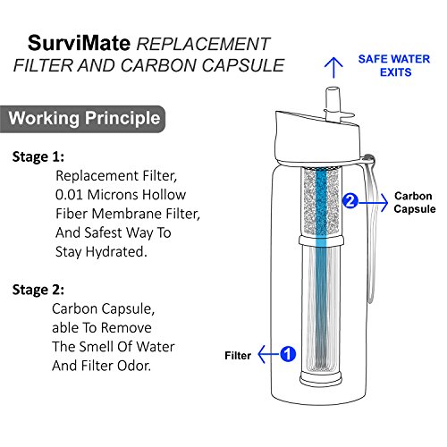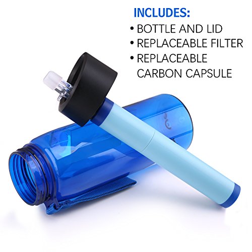 Outdoor survival filter water bottle is made by high precision ultrafiltration membranes , coconut shell carbon, and antimicrobial particles. 99.9999% of Common Bacteria can be filtered effectively,such as E. coli, and soften water, heavy metal ions, chlorine and other organic contaminants. The clean