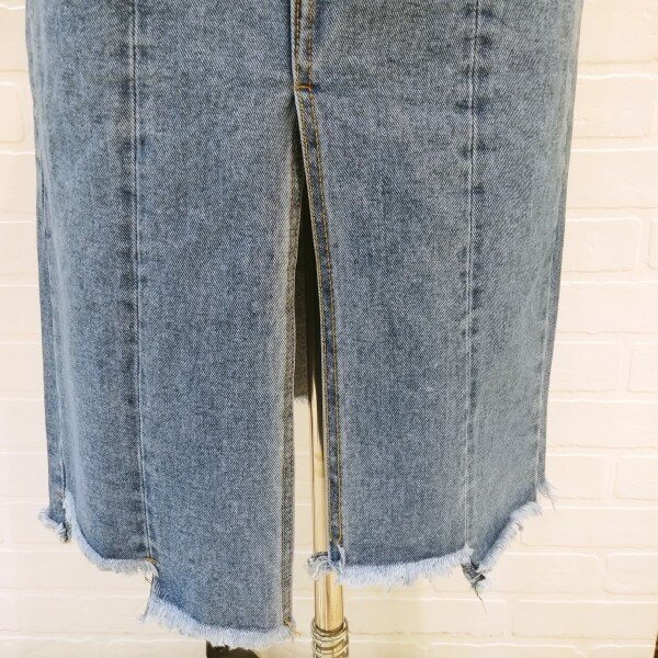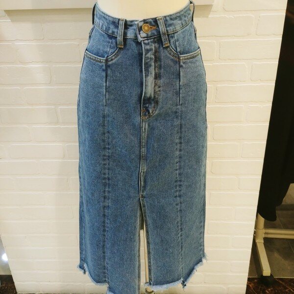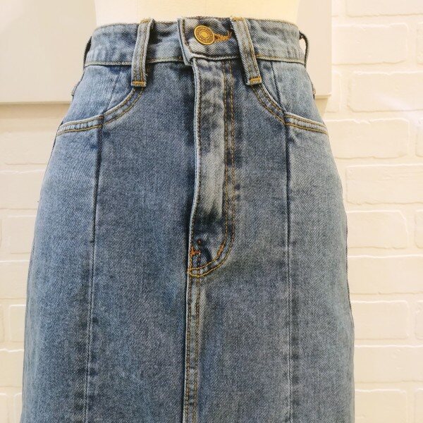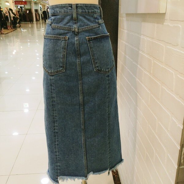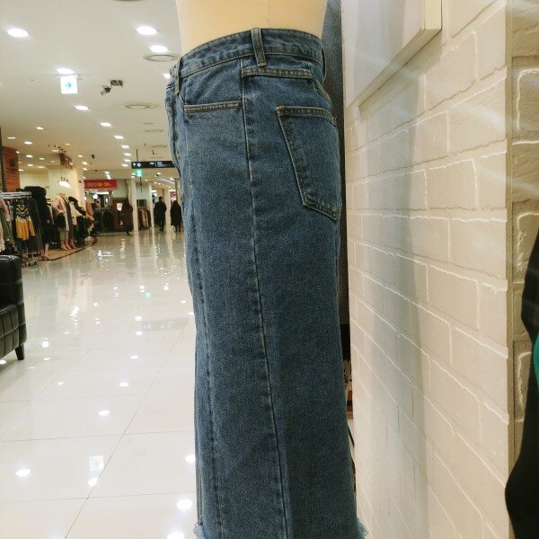 절개가 멋스러운 롱 청 스커트입니다