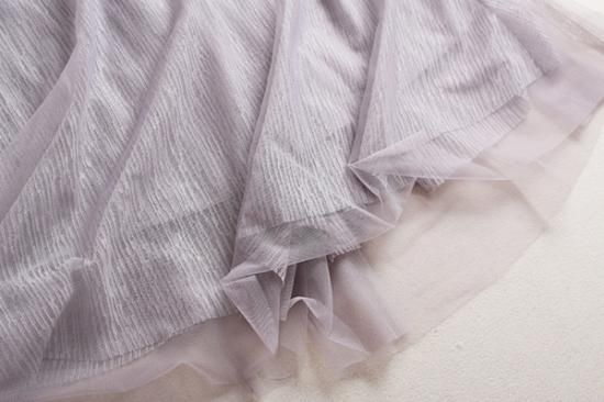 ミモレ丈の、オフショルパーティードレス。