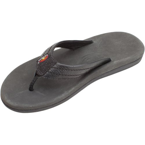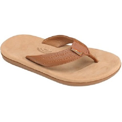 Studio : Rainbow Publisher : Rainbow Binding : Apparel Product Description The Rainbow North cove is a classic men's leather flip flop. This sandal has a molded footbed covered with premier leather for maximum comfort, which features the Rainbow embossed logo. The leather strap is triple stitched with bonded nylon thread, and the underside is lined with soft leather. The toe piece is wrapped, and secured with a box stitch. The bottom sole is a durable non-slip gum rubber, with the rainbow logo. This sandal is finished off with the original Rainbow woven label on the strap. 0