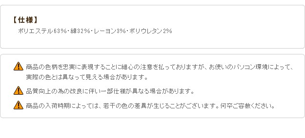 材質:ポリエステル63%・綿32%・レーヨン3%・ポリウレタン2%