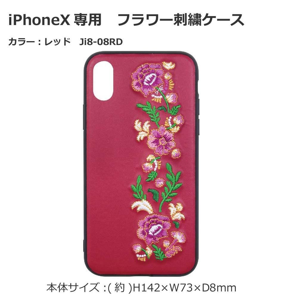 花の刺繍とPUレザーが大人可愛いを演出するiPhoneX専用フラワー刺繍ケースです。 製造国:中国 素材・材質:内側/PC(ポリカーボネート)外側/PUレザー、スウェード生地側面/TPU 商品サイズ:約H142×W73×D8mm 重量:約20g 仕様:対応機種:iPhone X ※サプライヤー直送品 ご注文後3~4営業日後の出荷となります【商品名】iPhoneX専用 フラワー刺繍ケース レッド Ji8-08RD