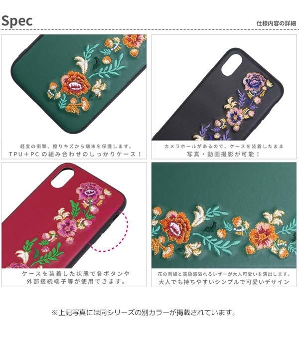 花の刺繍とPUレザーが大人可愛いを演出するiPhoneX専用フラワー刺繍ケースです。